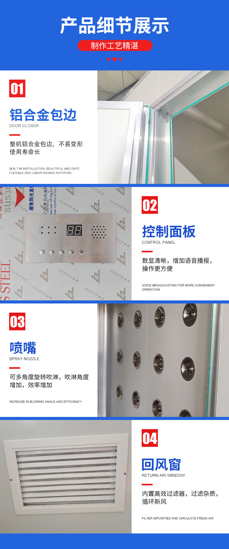 描述:潔凈板又稱凈化板,是一種由彩涂板、不銹鋼、鋁合金板等材質(zhì)作為面材的復(fù)合板。凈化板風(fēng)淋室擁有材質(zhì)上的優(yōu)勢輕便簡潔,適用于各種凈化車間使用